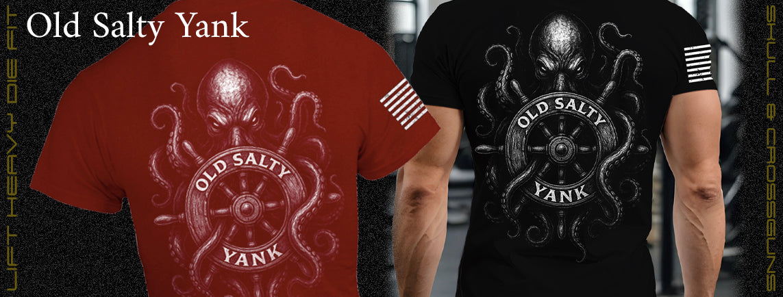 Old Salty Yank - US Flag Military Patriot Gym American Warrior 1776 Octopus Sailing Ship Crew Tee Unisex T-Shirt -