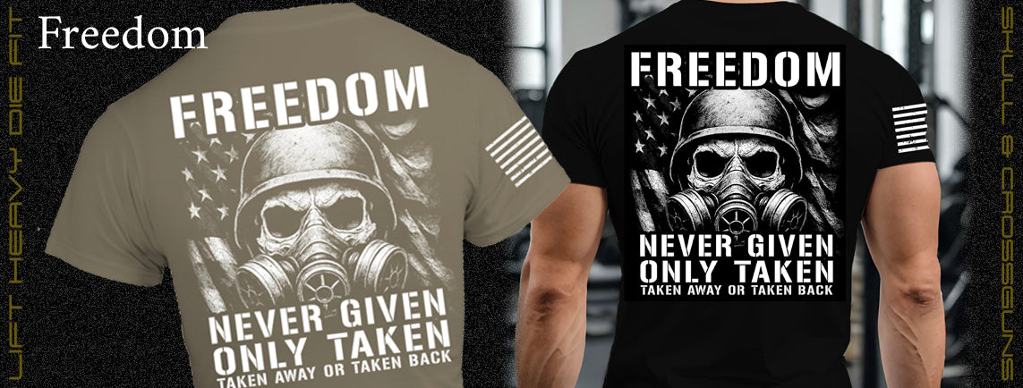 Freedom Never Given Only Taken - US Flag Gas Mask American Military Patriot Gym 1776 Unisex T-shirt for Men and Women -