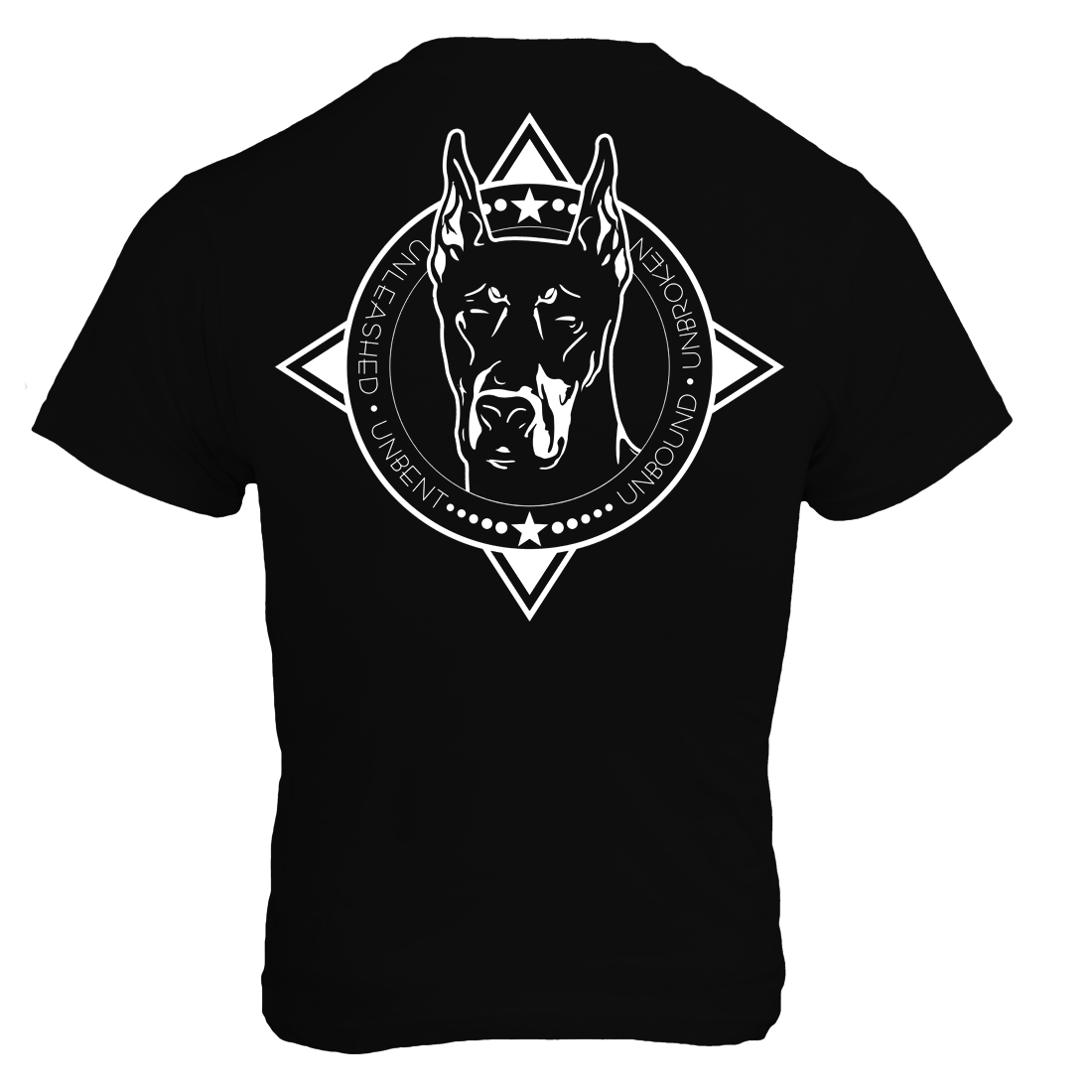 Unleash your full potential with our Unleashed, Unbound, Unbent, Unbroken T-Shirt. This motivational design features a stunning image of a Doberman, a symbol of strength and determination. The comfortable unisex fit makes it perfect for working out or everyday wear, and the powerful message will inspire you to strive for greatness in all aspects of your life. Available in multiple sizes and colors, this t-shirt is a great addition to any wardrobe and makes a perfect gift for anyone in need of a little extra motivation. Order now and wear your determination on your sleeve!