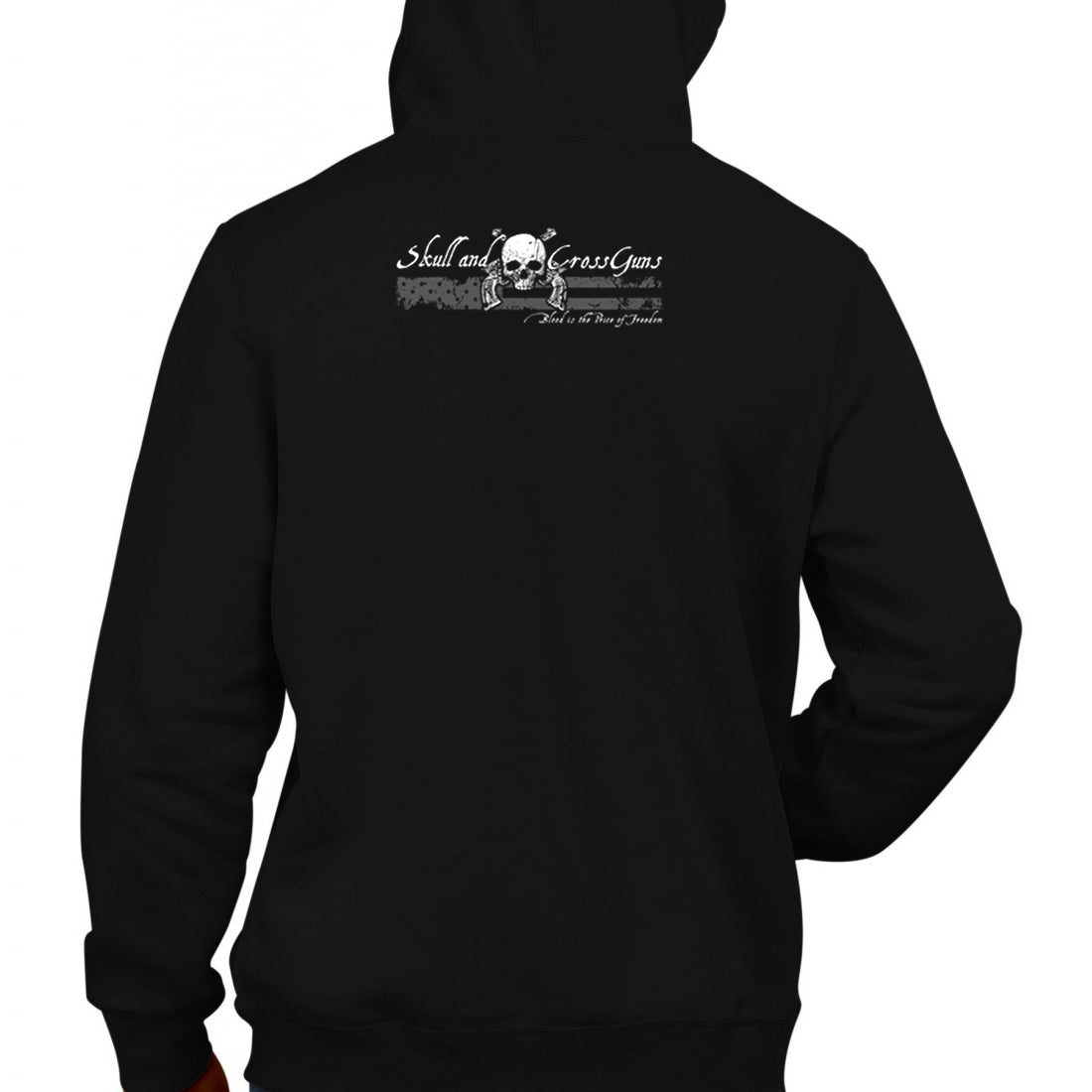• Rear - Skull and Crossguns logo / Flag and tag line (two color)