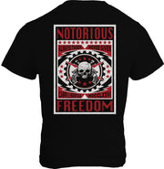 Notorious Freedom - What exactly does that mean? Our forefathers came to this country and TOOK their freedom and set up laws by which those freedoms should be protected. Our new “propaganda” style poster is designed to be the reminder to those who think our freedoms are firmly intact. Freedoms are never given to us or by us, but only taken. We the people will either take our freedoms or have them taken away.