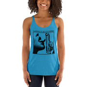 This racerback tank is soft, lightweight, and form-fitting with a flattering cut and raw edge seams for an edgy touch.