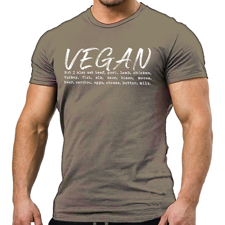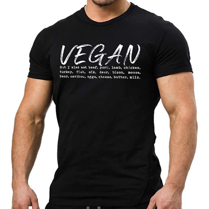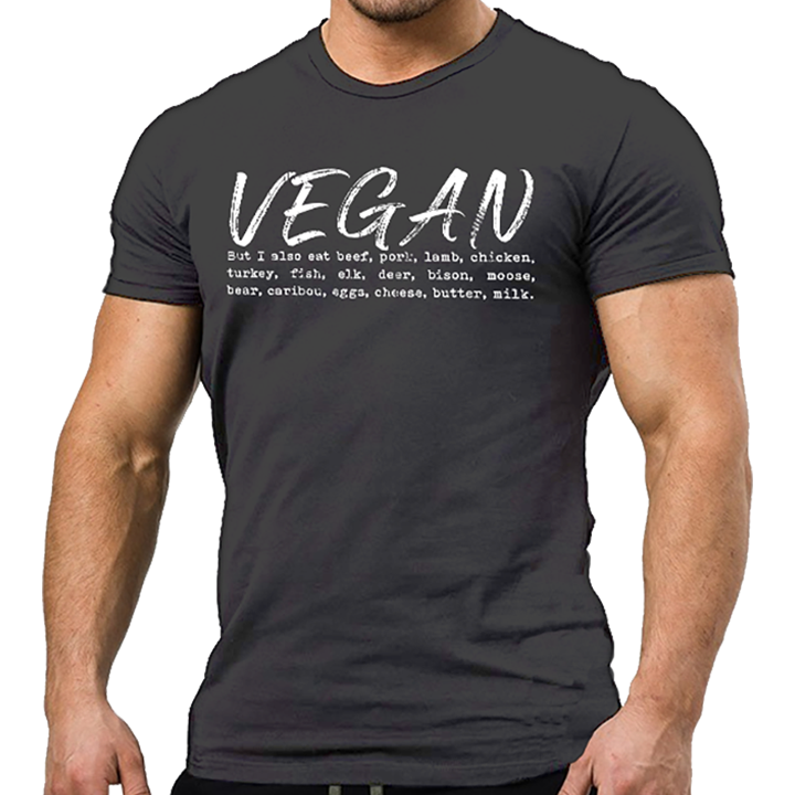 Unveil Your Inner Irony: The 'Vegan' Shirt for Carnivores - Sarcastic Humor Short Sleeve T-shirt