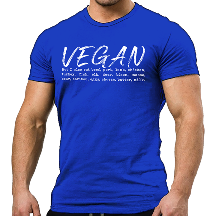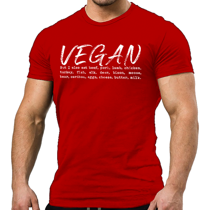 Introducing our all-new 'Vegan' Shirt designed to humorously showcase the joy of indulging in a carnivorous diet. Perfect for those with a side of irony, this shirt sparks conversations and adds a touch of fun to any food lover's wardrobe. Embrace the irony and proudly wear your love for meat on your sleeve!
